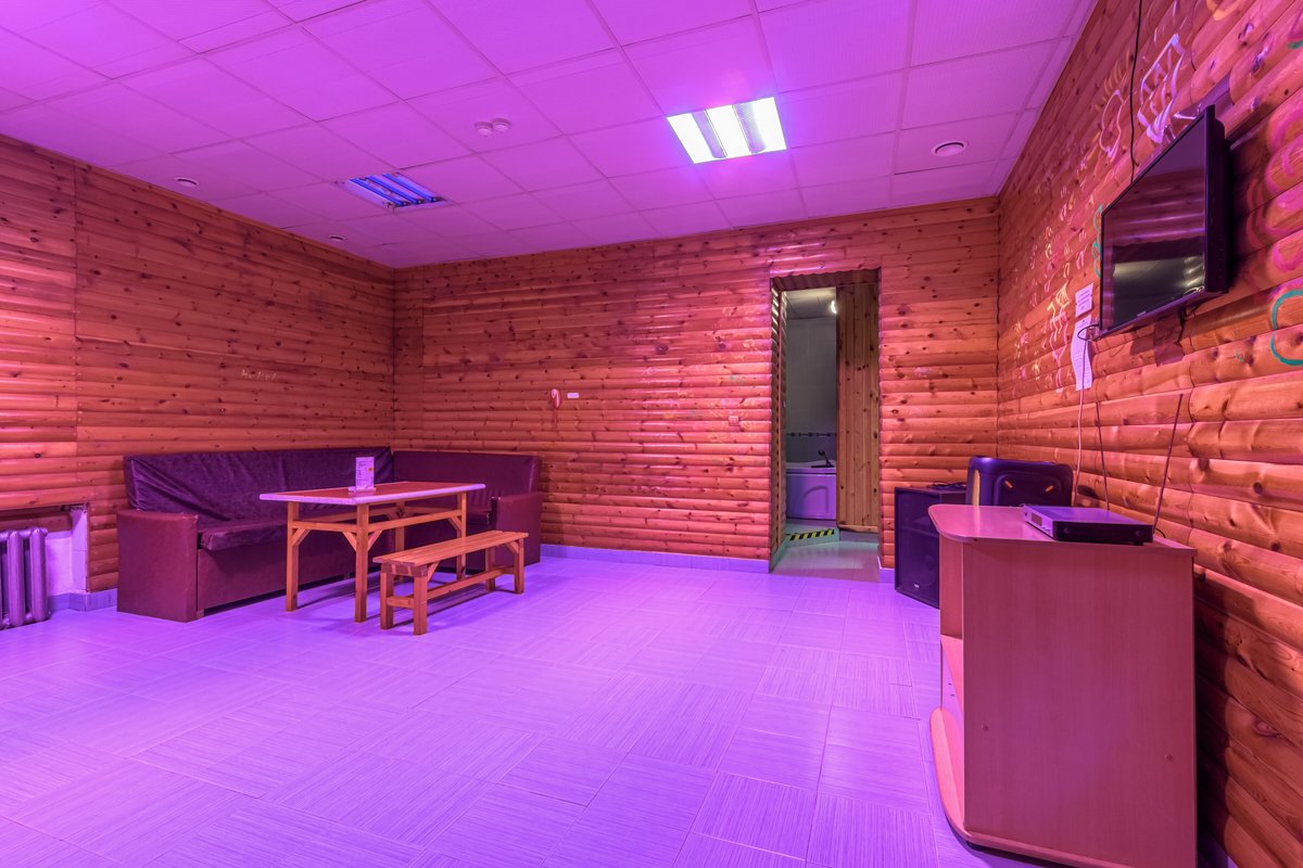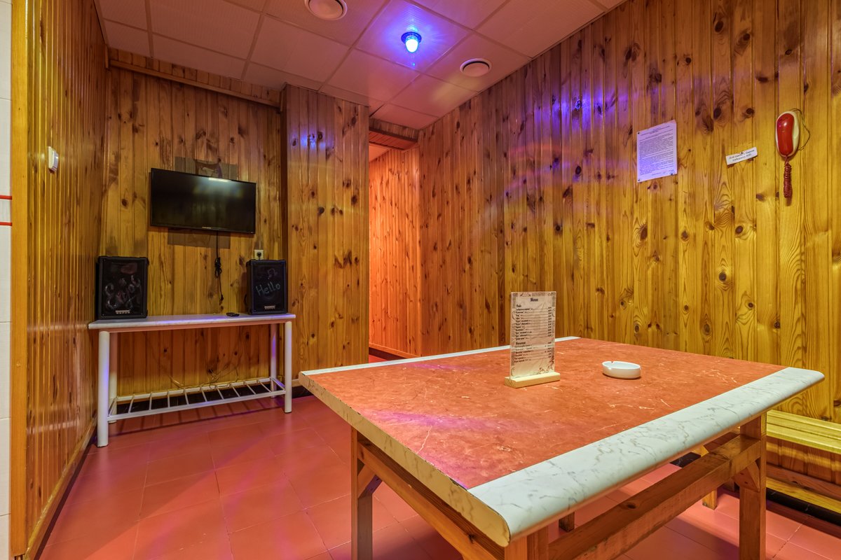 Не хочется в бассейн? Не проблема! Вместо этого можно передохнуть в нашей комнате отдыха. Мы постарались создать здесь комфортный, стильный интерьер из максимально натуральных, экологичных материалов, выбрать мебель, которая будет одновременно удобной и приятной глазу. Надеемся, что вы его оцените! Для создания настроения у нас есть кальян и караоке. Также у нас работает бар, а если нужно, вы можете принести и собственную еду - мы не против! Только не забывайте, что плотная трапеза непосредственно перед посещением парной - это не самая хорошая идея, согласно мнению терапевтов. А вот после парной можно трапезничать смело!